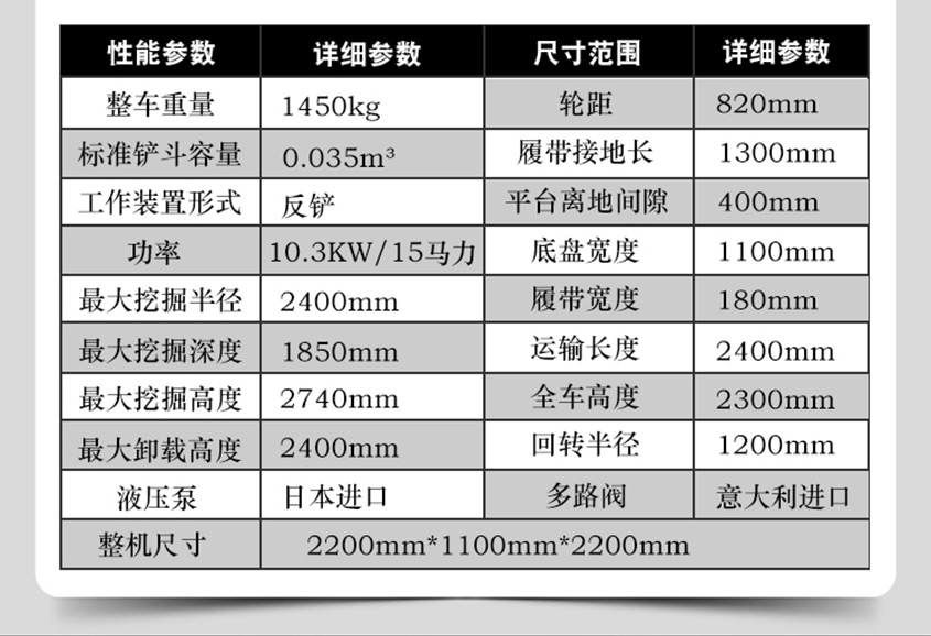 整機重量:1700kg履帶寬度:230mm發(fā)動機功率:18.1kw