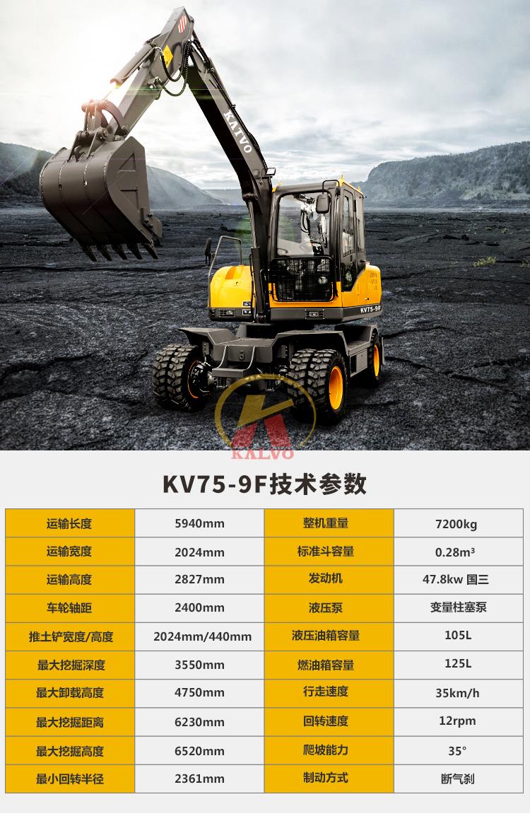 KV75-9F小型輪式挖掘機