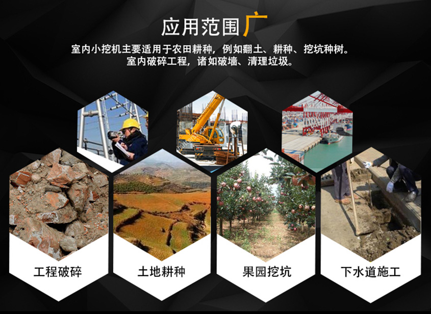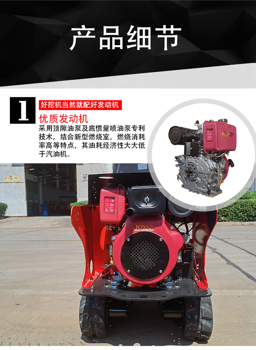 機身特點:1、可挖深1.4m;2、可進大棚、果園;3、回轉半徑小