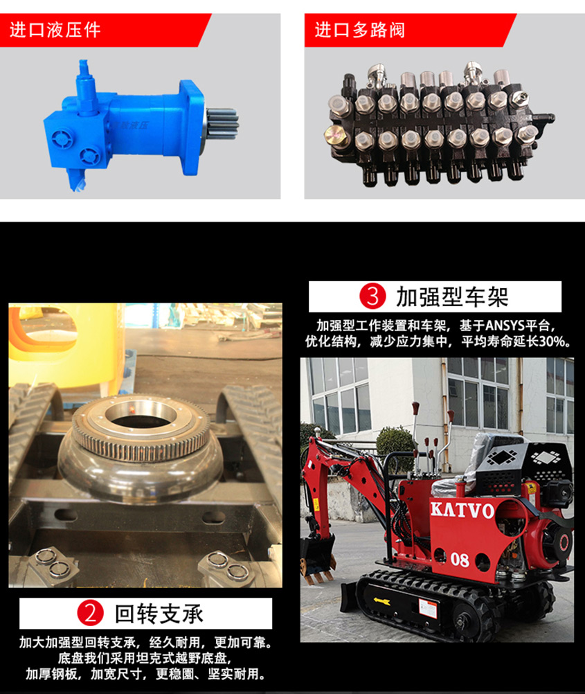 08型小型挖掘機搭載常柴單缸發動機動力強勁、噪音小、排放低、油耗少、維修方便,配置高精準的綜合儀表監控系統,實時監控設備各項性能參數,性能穩定,工礦適應力強.